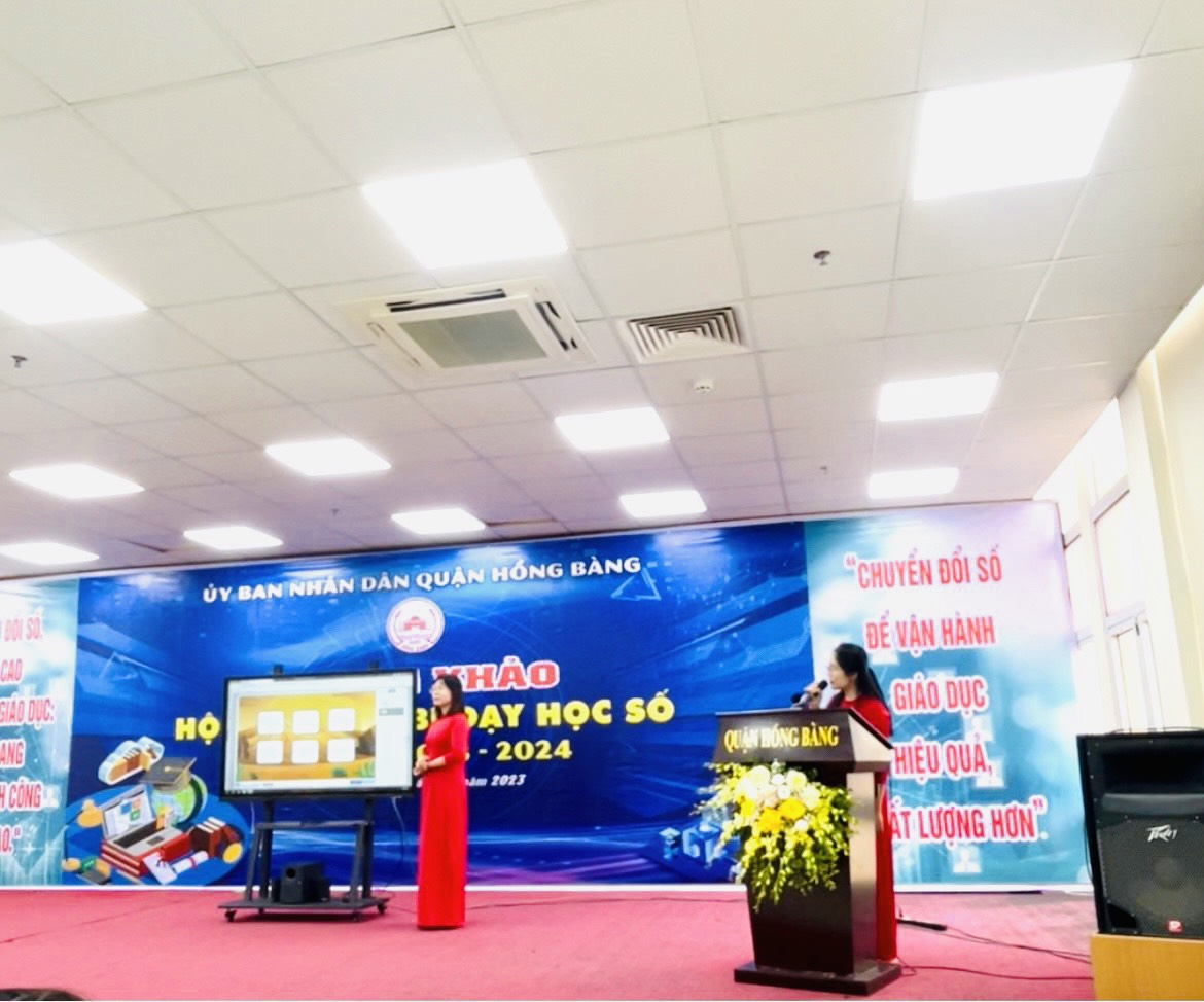 - Sáng ngày 15/11/2023 UBND quận Hồng Bàng tổ chức “ Ngày hội chuyển đổi số năm 2023” tham gia dự thi chung khảo thiết bị dạy học số năm học 2023-2023 với sản phẩm “ Bộ trò chơi tương tác dùng trong môn Toán học lớp 6” bộ sách kết nối tri thức với cuộc sống của nhóm tác giả Nguyễn Hoài Thu, Nguyễn Thị Dung, Hoàng Thị Kim Ngân đã đạt giải ba.